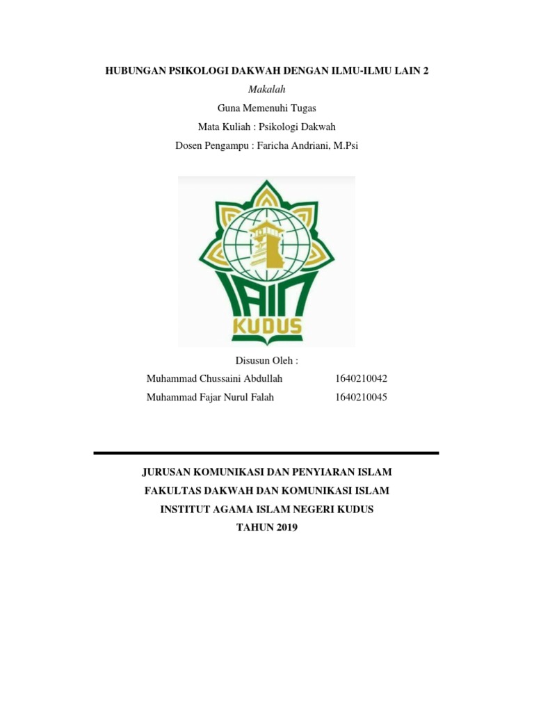 Contoh Makalah Hubungan Ilmu Dakwah Dengan Ilmu Lainnya