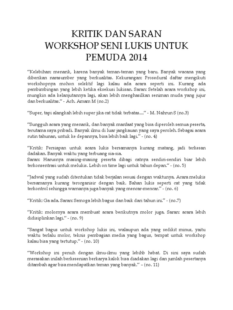 Contoh Kritik Dan Saran Pada Makalah Kesenian