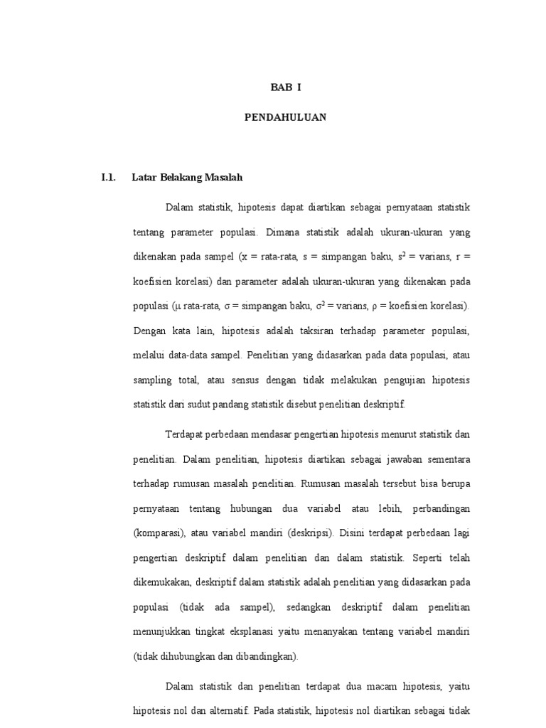 MAKALAH disusun O L E H Kelompok 3 Tiga Saat Santoso Hendri Rara Wardha Freddy Setiawan Andi Hermanto AKADEMI BAHASA ASING NURDIN HAMZAH JAMBI 20102011 KATA PENGANTAR Puji syukur kami ucapkan kehadirat Tuhan Yang Maha Esa atas rahmat dan karunia Nya sehingga kami dapat menyelesaikan tugas makalah statistic ini. Atau dengan kata lain jika suatu pernyataan dibuat untuk menjelaskan nilai parameter populasi maka hal pernyataan ini juga disebut hipotesis statistik.